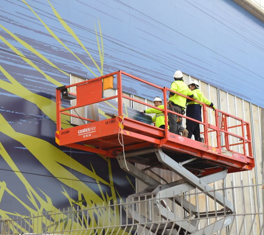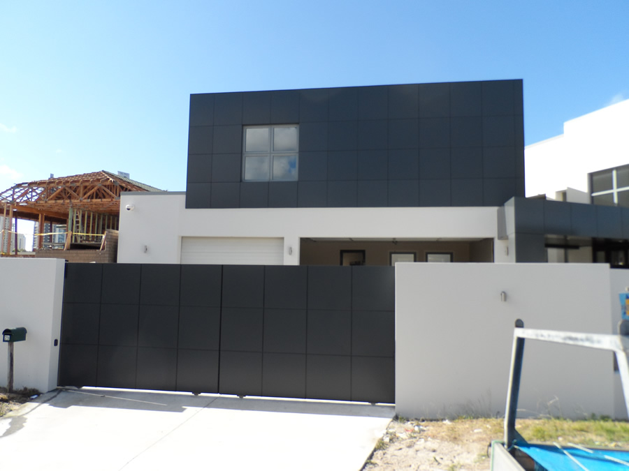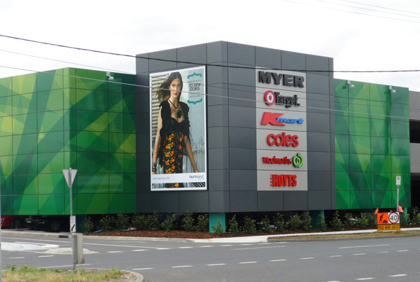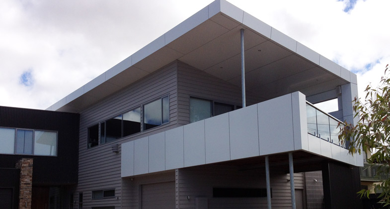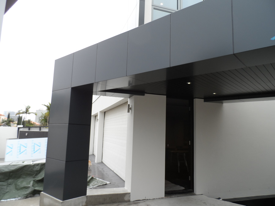 A light weight composite aluminium panel consisting of two aluminium cover sheets of corrosion resistant alloy AMG1, (A5005A) and a core made of low density polyethylene, as manufactured by Alcan Composites and supplied throughout Australia by Alucobond Architectural Pty Ltd.